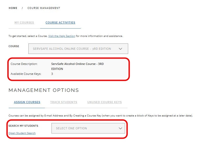 If the student has not started the course, a red trash can icon will be visible. By selecting this icon, this will remove the course from the student, allowing it to be reassigned to your course key pool.