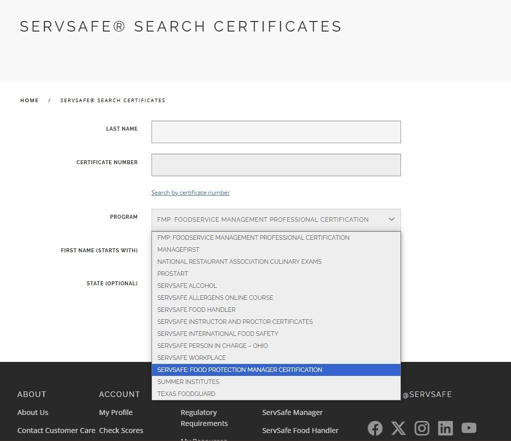 To verify a certificate's validity, use the certificate search engine here: ServSafe Certificate Search.