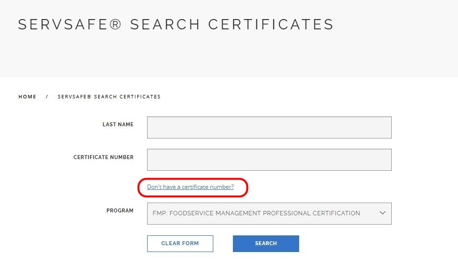 If you don't have the certificate number, select Don't have a certificate number? and search by name and state.