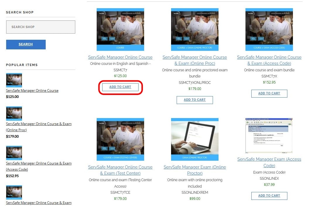 Once you have selected the product you wish to purchase, add the items to your shopping cart.