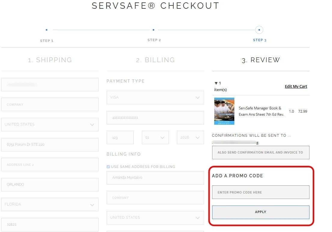 Enter your promo code in the designated field and select Apply to review the new price with your promo code added. Once the promo code is added you may continue with your purchase.