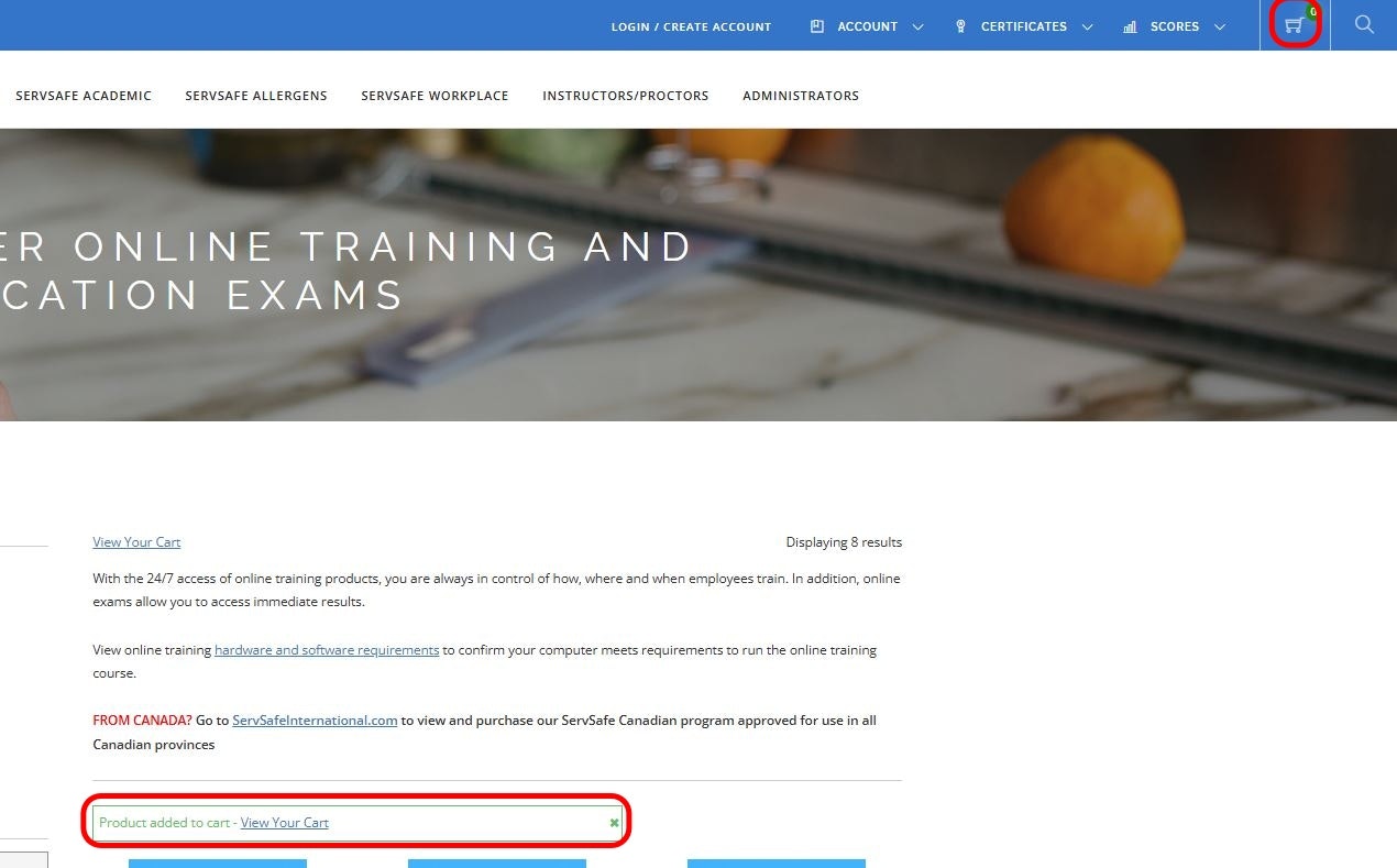 Once all desired products are added to your shopping cart, select the shopping cart icon or View Your Cart.