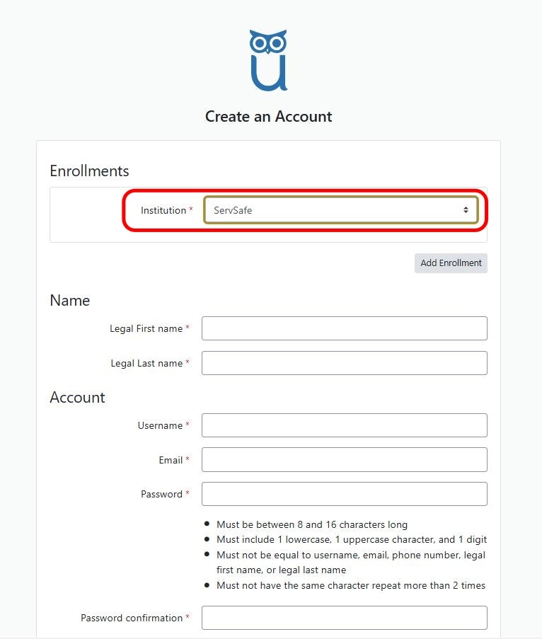 Complete all the required details on the registration form. Make sure to select ServSafe as your institution when registering for the ServSafe Food Protection Manager's exam.
