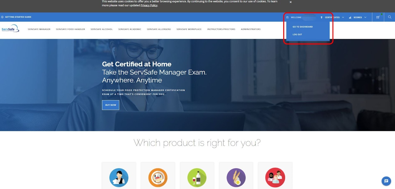 If the purchase was made under your ServSafe account, you may use the Exam Access Key search engine here and continue in the guide for the step-by-step process: