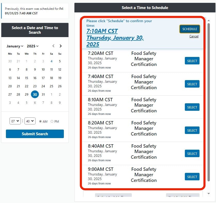 Choose a new date and select Submit Search.