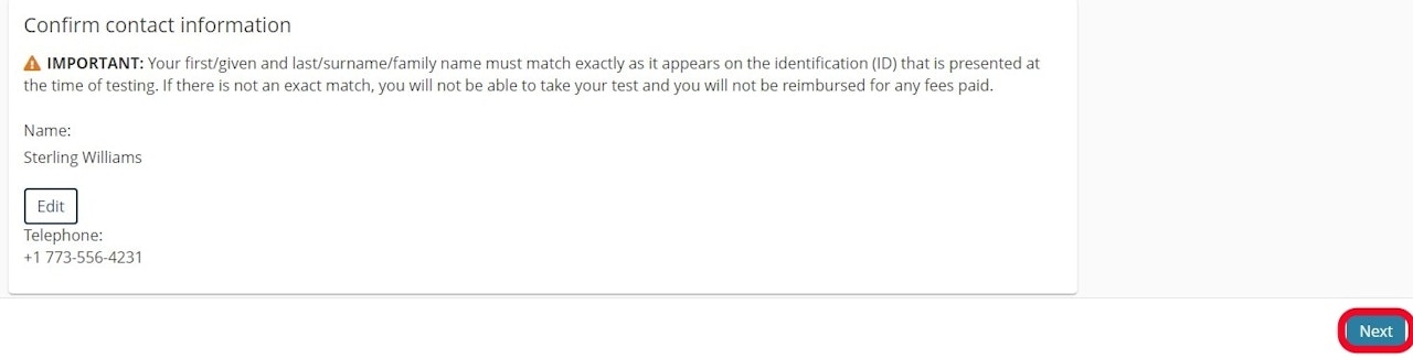 Choose your exam language and select Next.