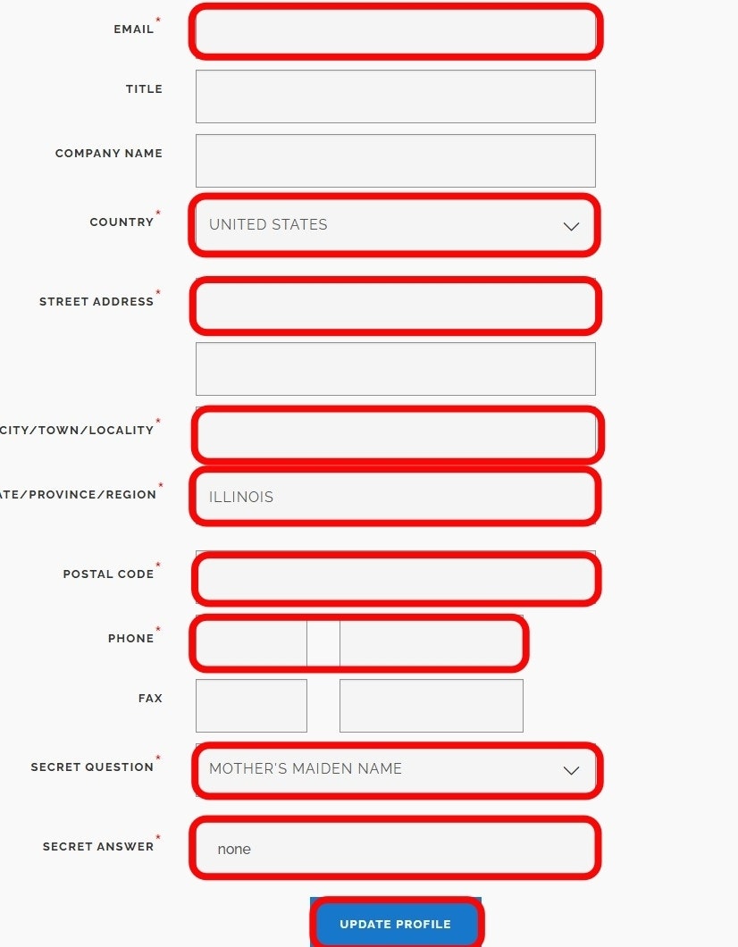 Fill in all required fields and select Update Profile to save your changes.