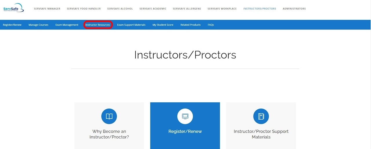 Select the "Instructor/Proctors" link on the homepage.
