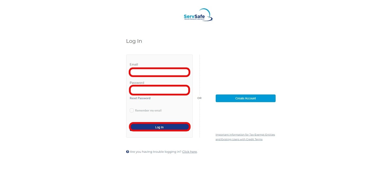 Log in to ServSafe.com